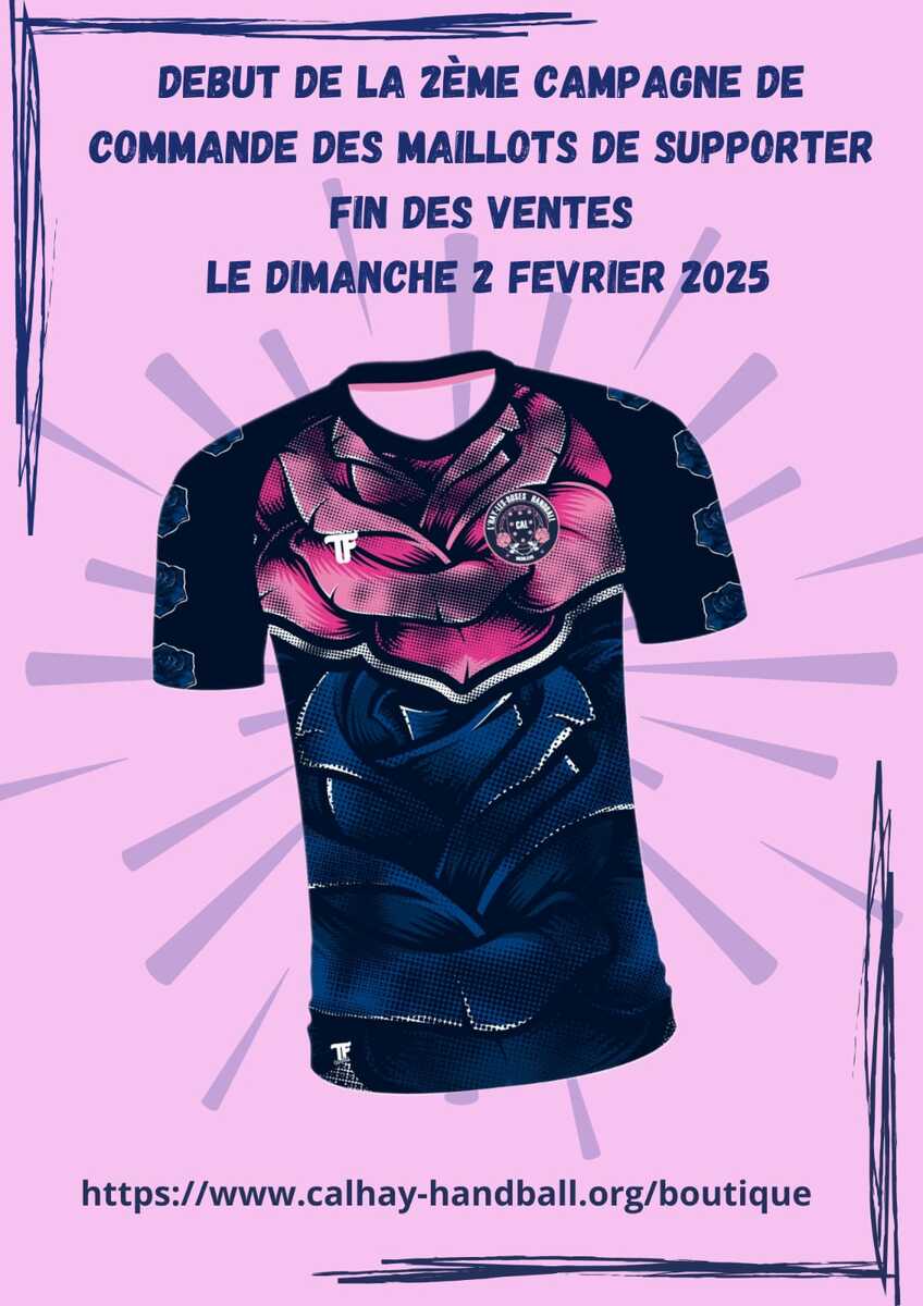 Pour nos fervents supporters, une deuxième campagne de commande de maillot de supporter a commencé. Elle se terminera le 02 février 2025.